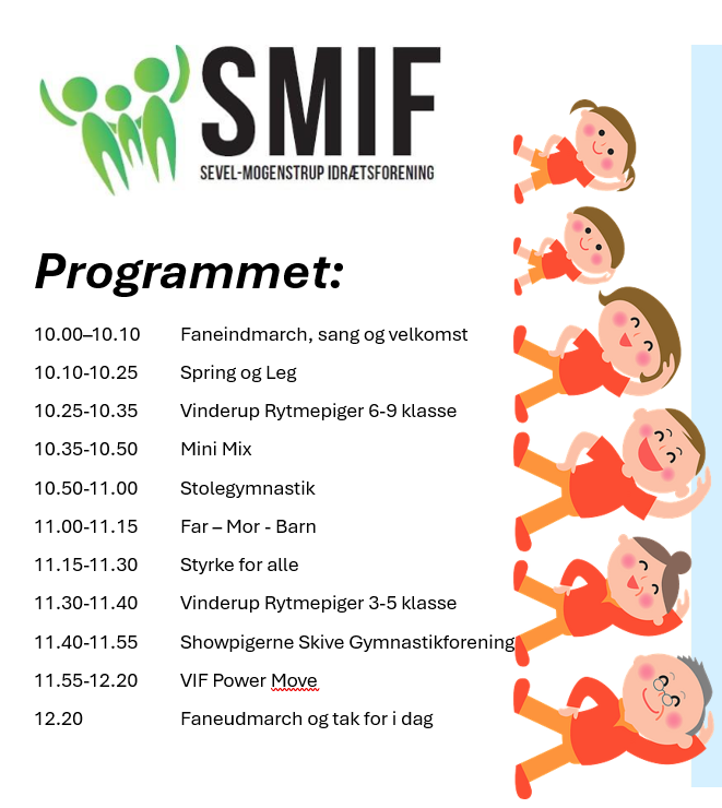 Sevel-Mogenstrup idrætsforening Følg os på facebook! Hjertelig velkommen til Sevel-Mogenstrup Idrætsforenings hjemmeside. SPONSORER Klik her for at melde dig til spinning Log ind på conventus Arrangementer/Nyheder Se alle arrangementer GYMNASTIK-OPVISNING 14/3